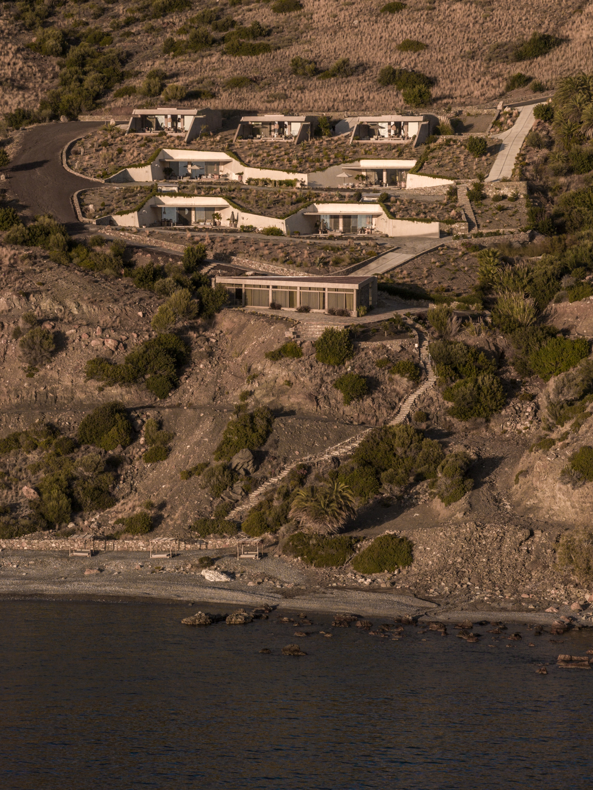 Cave villas for up to 3 guests, Double villas for up to 4, share the same architectural language, carved into the landscape to offer privacy and calm.