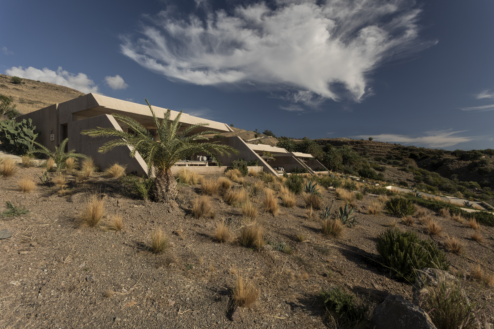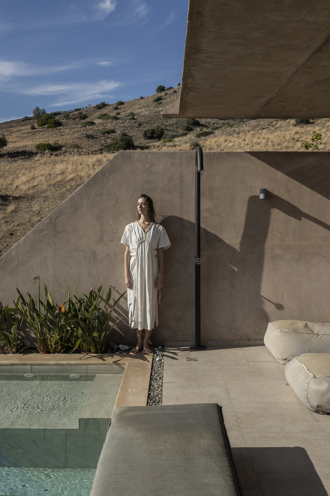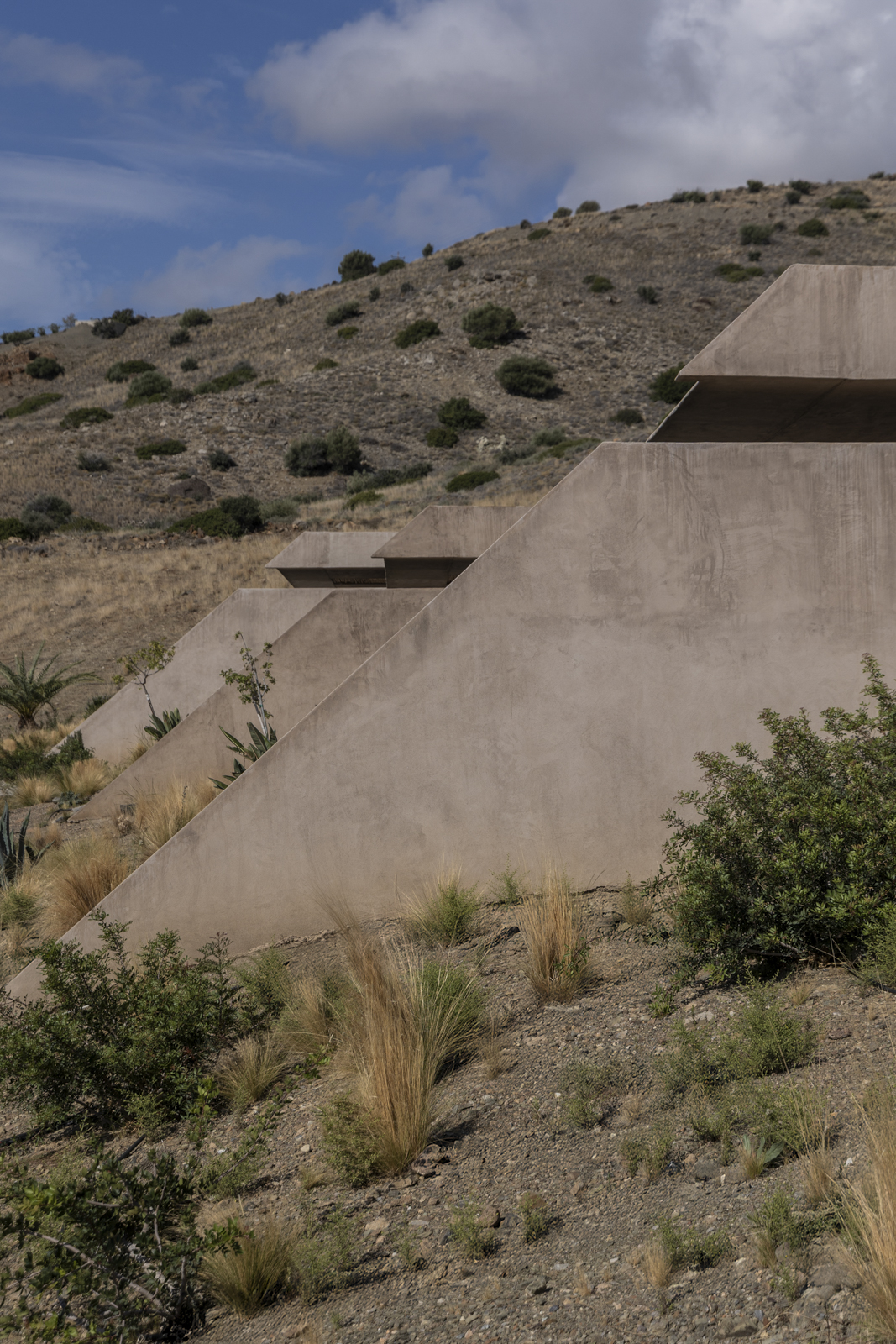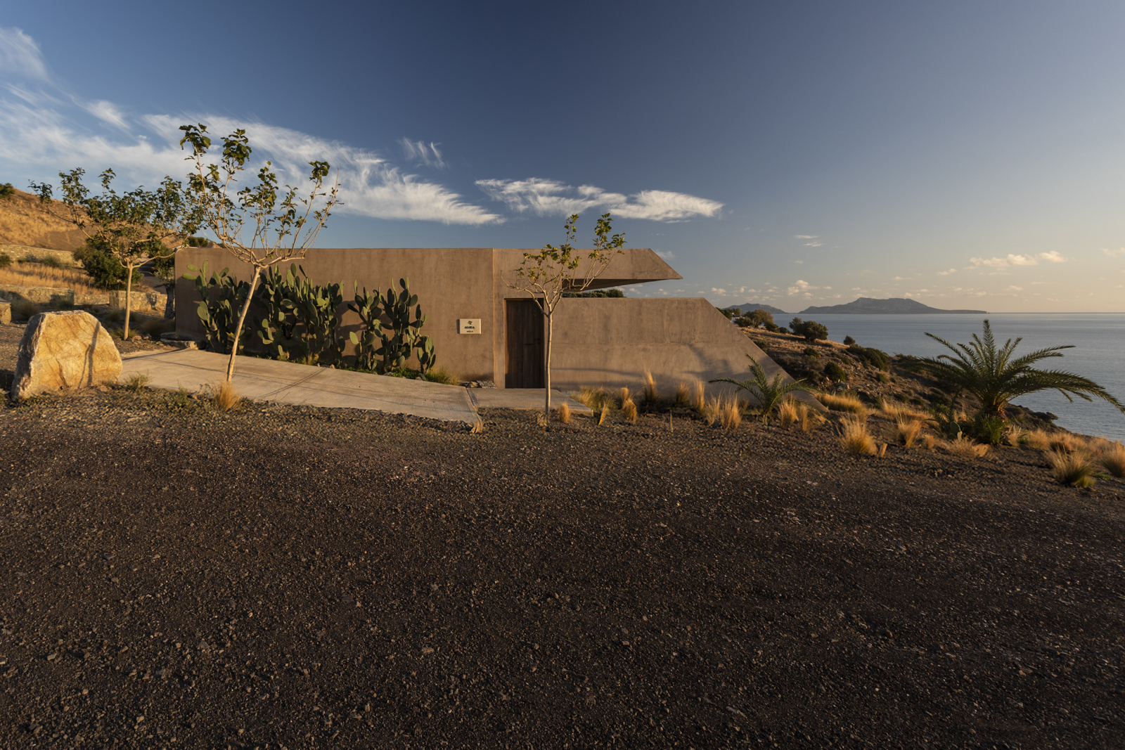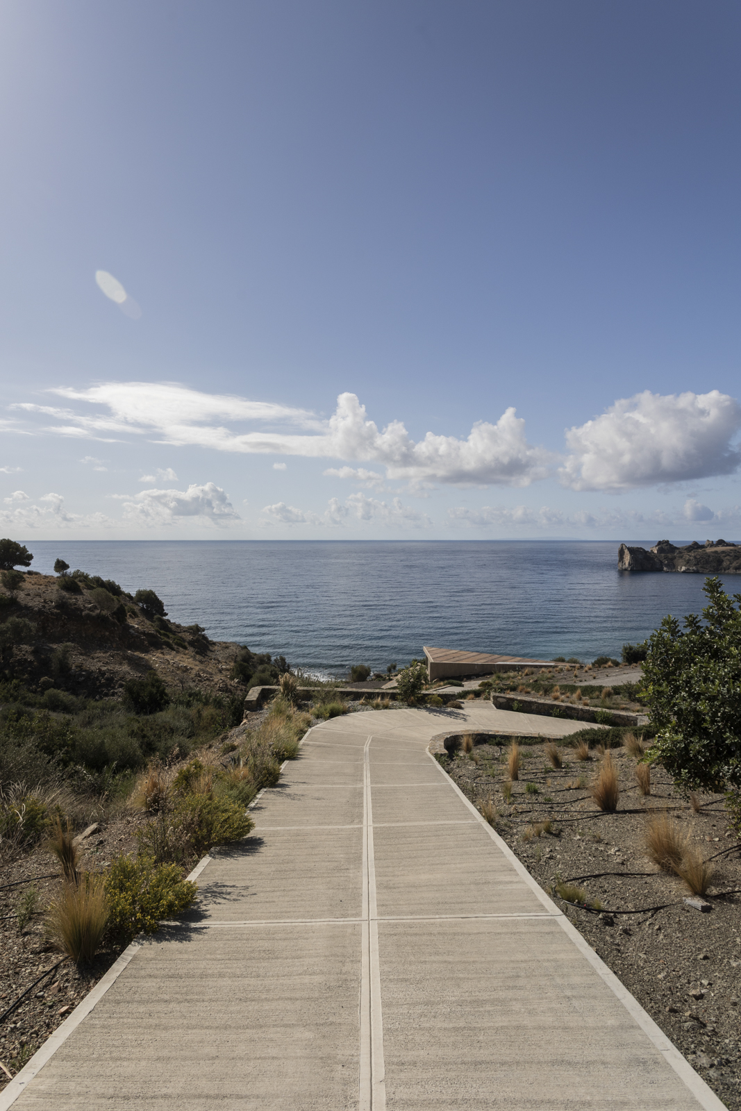 It has a unique architecture and it maintains the quality of the natural landscape. The construction is in harmony with the natural environment and it fully follows the principles of bioclimatic design and almost zero energy consumption.