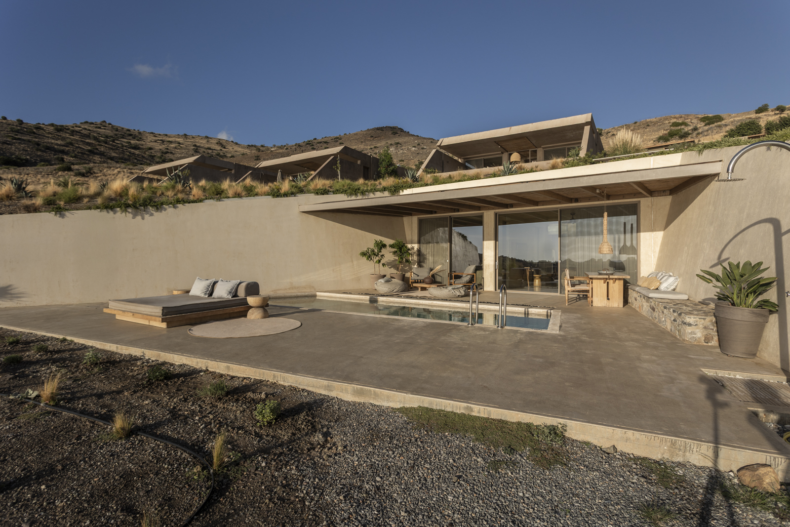 The outdoor living area, with its private infinity pool, faces the endless horizon, inviting guests to slow down and merge with the sea and sky.